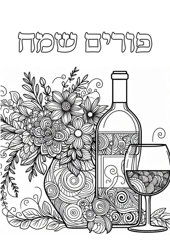 דפי צביעה לפורים | יין וזר פרחים
