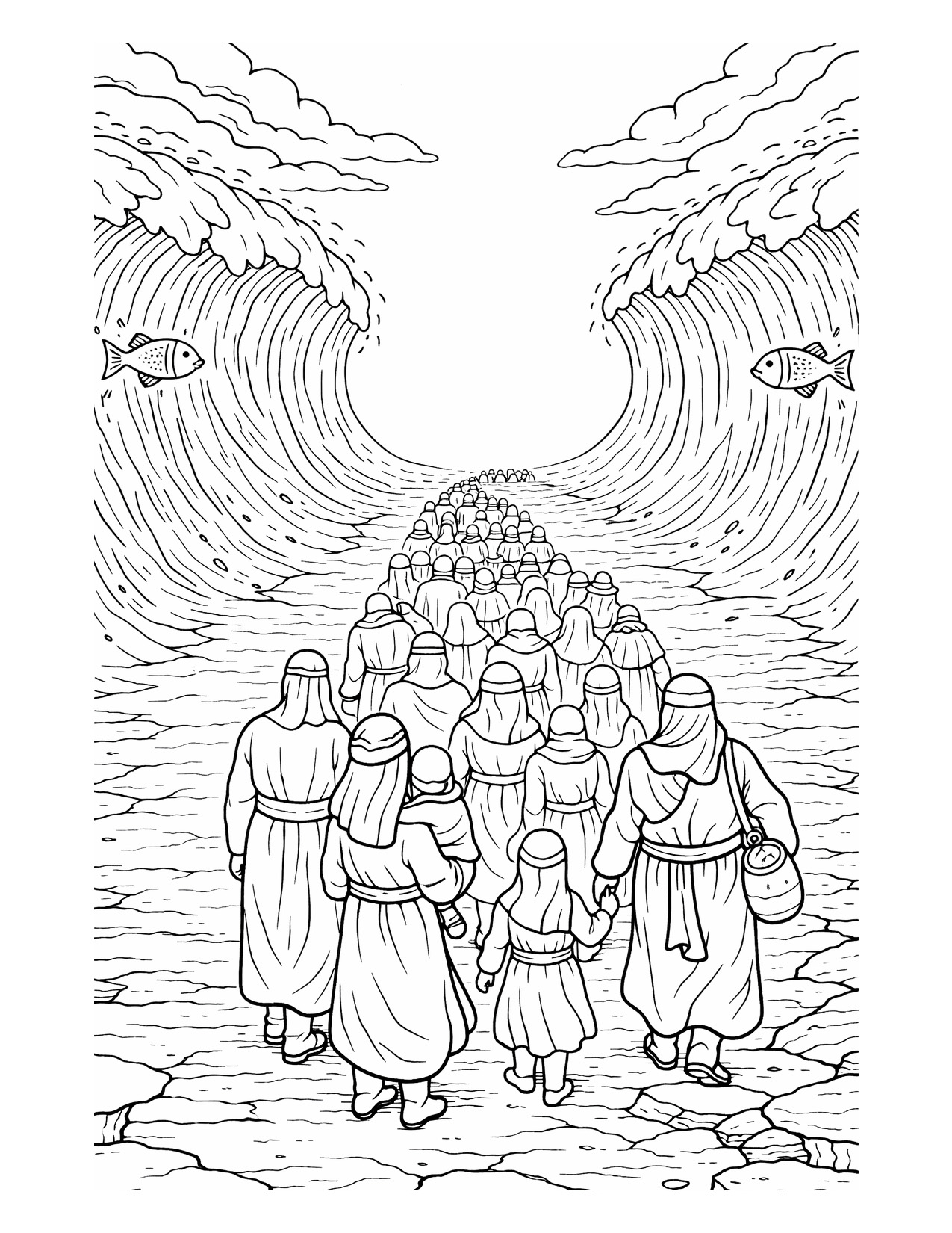 דפי צביעה, פרשת בשלח | קריעת ים סוף